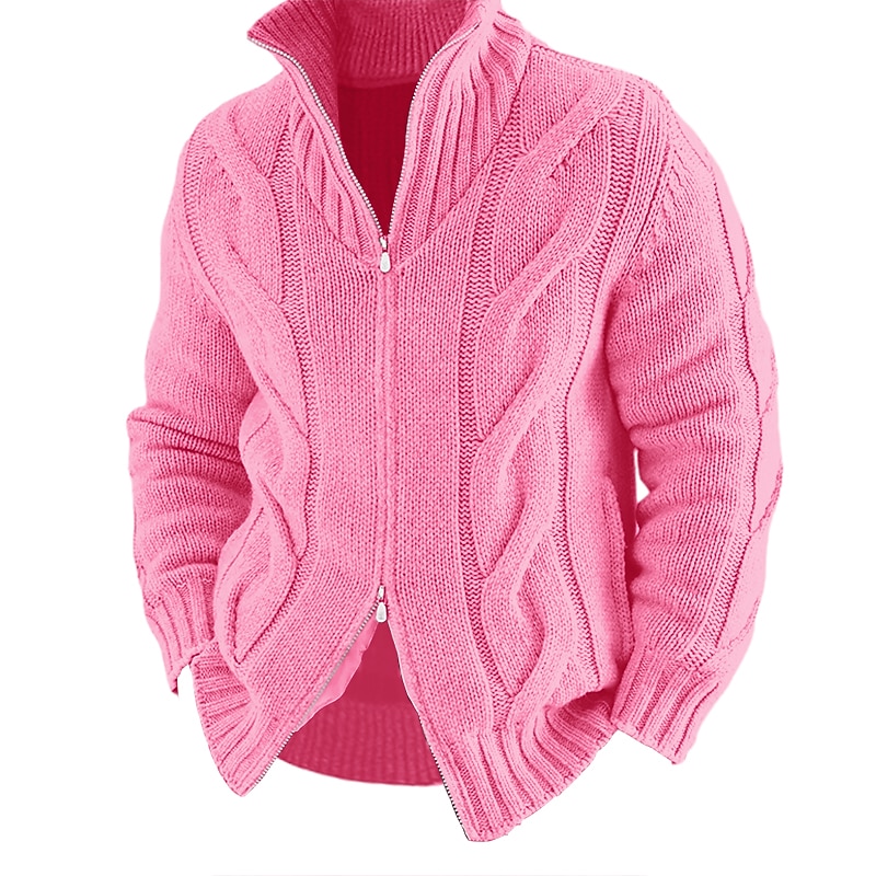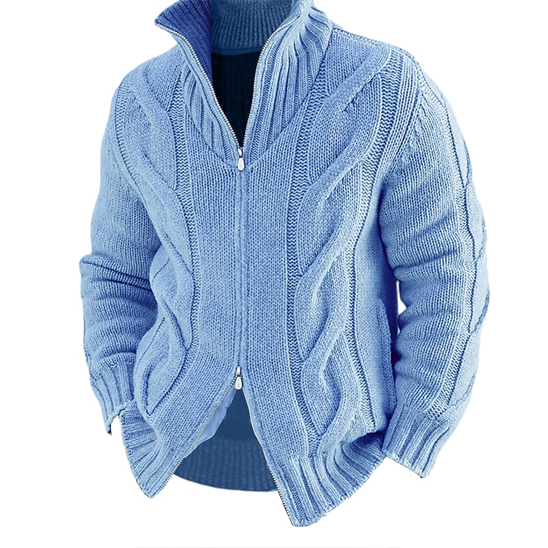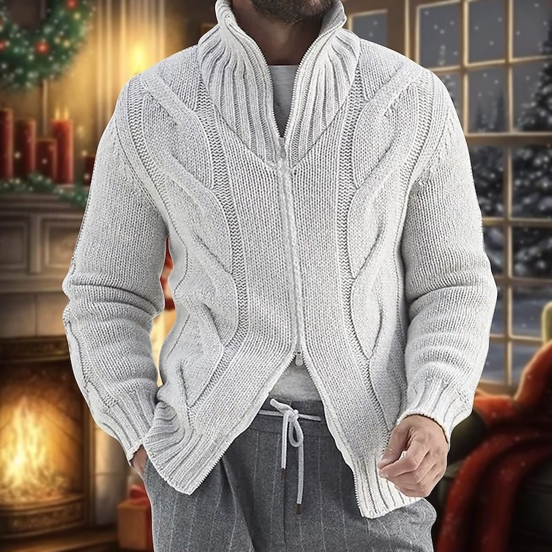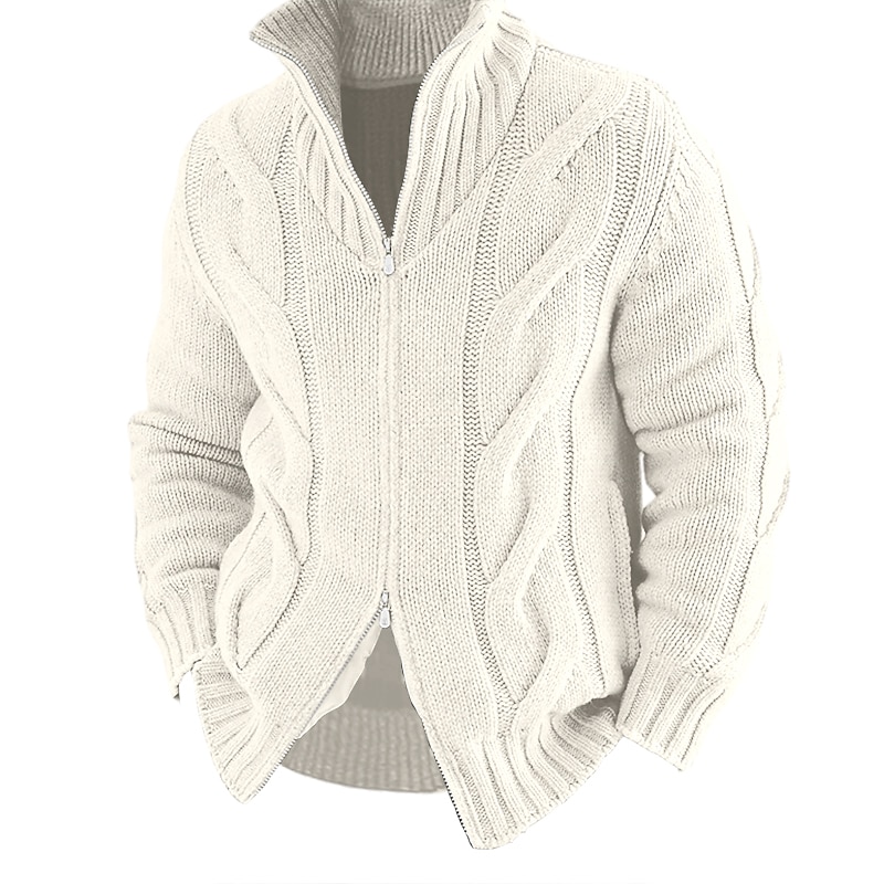 More information about Men's Cardigan Sweater Zip Sweater Chunky Cardigan Cable Regular Knitted Plain Stand Collar Warm Ups Modern Contemporary Casual Daily Wear Clothing Apparel Fall Winter Black White M L XL