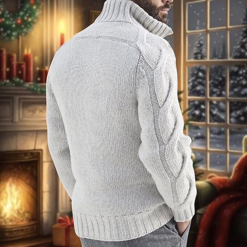 Highlights - Perfect for the winter season - Long sleeve for added warmth - Designed for men - Features a stylish stand collar - Made with a cable knit style for a trendy look