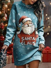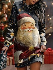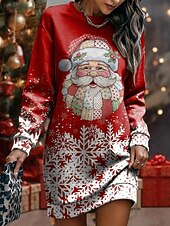 More information about Christmas Women's Knee Length Dress Shift Dress Vacation Casual Birthday Date Regular Fit Graphic Santa Claus Long Sleeve Crew Neck Black Red Blue Spring Fall Winter