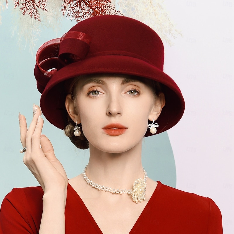 More information about Hats 100% Wool Bowler / Cloche Hat Bucket Hat Wedding Tea Party Elegant Wedding With Bowknot Splicing Headpiece Headwear