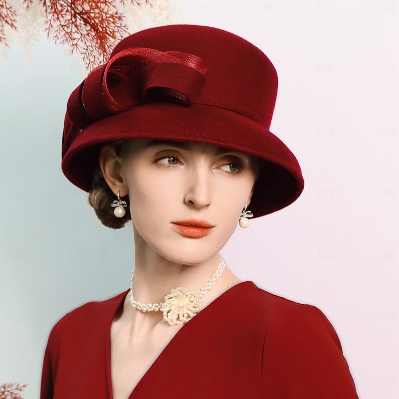 Hats 100% Wool Bowler / Cloche Hat Bucket Hat Wedding Tea Party Elegant Wedding With Bowknot Splicing Headpiece Headwear 4