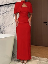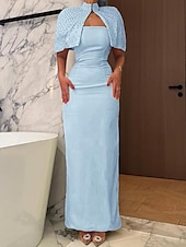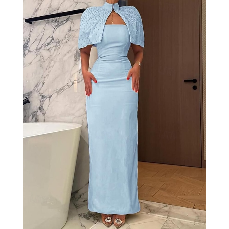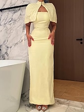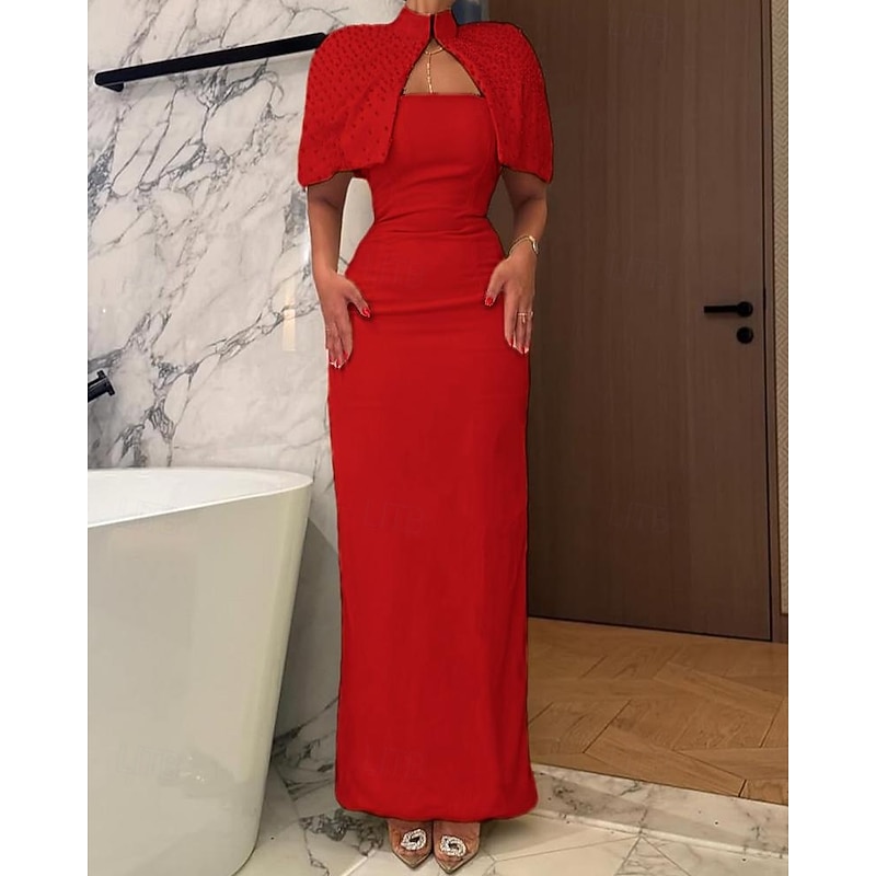More information about Cape Dress Crystal Mermaid / Trumpet Evening Gown Detachable Cape Elegant Dress Formal Semi Formal Wedding Floor Length Sleeveless Mock Neck Stretch Crepe