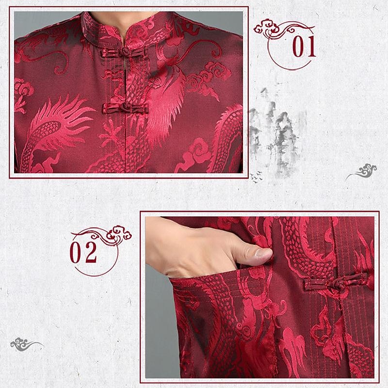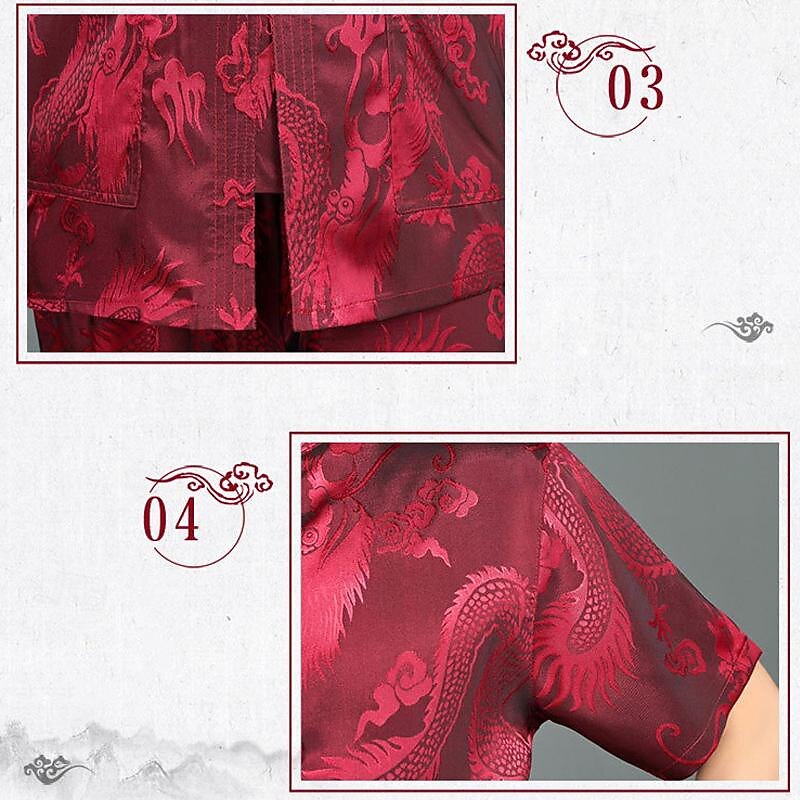 More information about Men's Shirt Chinese Collar Shirt Mandarin Collar Shirt Summer Shirt Casual Shirt Beach Shirt White Yellow Red Blue Gray Short Sleeve Dragon Mandarin Collar Vacation Holiday Embroidered Clothing