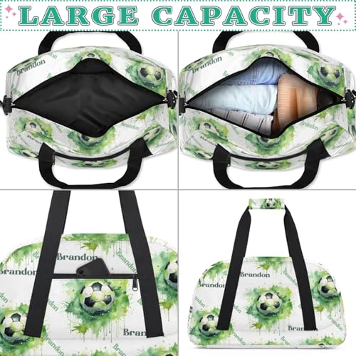 Personalized Duffle-Bag for-Girls-Boys Customized Sports-Bag Carry-On-Bag Gym-Travel-Bag Football-Bag Gymnastics-Bag Green Football Brandon 4
