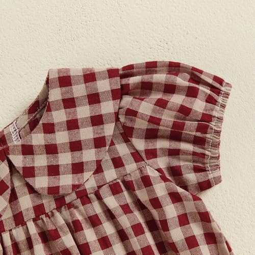 KMBANGI Newborn Baby Girl Clothes Short Sleeve Doll Collar Plaid Romper Bubble Smocked Bodysuit Infant Princess Summer Outfit