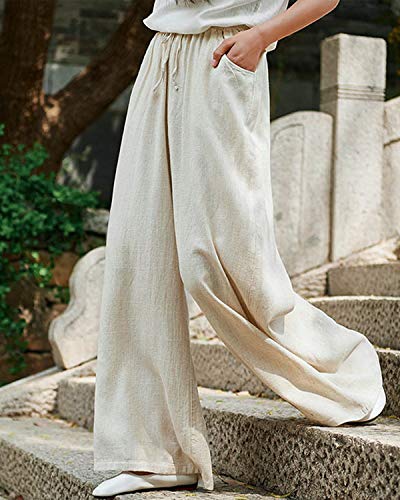 More information about IXIMO Women's Cotton Linen Wide Leg Pants Casual Drawstring Lounge Palazzo Loose Trousers