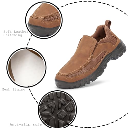 More information about Men's Leather Platform Orthopedic Walking Loafers Stylish Round Toe Soft Sole Non-Slip Arch Support Slip-On Outdoor Casual Shoes Driving Hiking Penny Shoes