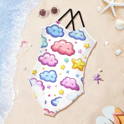 ZZKKO Cute Cloud Star Girls Swimsuit One Piece Bathing Suit for Baby Girls' Swimwear 3T