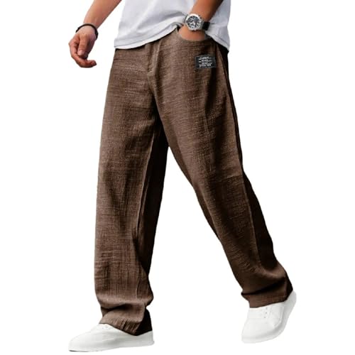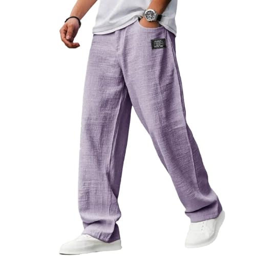 More information about Mokaloha Mens Pants, Pacificozy Men's Casual Hemp Embroidered Logo Comfortable and Breathable Elastic Waist Trousers