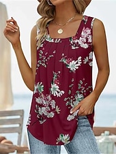 More information about Women's Camisole Tank Top Fashion Floral Paisley Print Sleeveless Regular Tops Square Neck Casual Holiday Black White Yellow Wine Green Summer