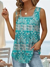 HOT ! Women's Camisole Tank Top Fashion Floral Paisley Print Sleeveless Regular Tops Square Neck Casual Holiday Black White Yellow Wine Green Summer