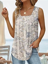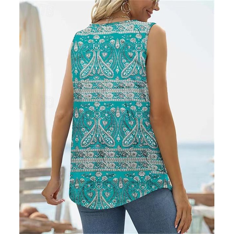 Highlights [Fabric]: Crafted from high-quality polyester with micro-elasticity, this tank top offers a breathable and lightweight feel, perfect for staying comfortable on warm summer days. [Fit]: The blouse features a regular fit with a sleeveless design, providing ease of movement while maintaining a fashionable silhouette. Its square neckline adds a sophisticated touch to its casual appeal. [Design Highlights]: Adorned with a vibrant floral and paisley print, this tank top brings a fresh and lively vibe to any outfit. The print features an array of colors, making it a standout piece suitable for various fashion-forward looks. [Occasions]: Ideal for holidays, casual outings, or beach trips, this tank top is versatile and can be seamlessly paired with jeans or shorts for a relaxed yet stylish ensemble. [Size Range]: Available in sizes S, M, L, XL, and 2XL, this blouse caters to a variety of body types, ensuring a comfortable fit for everyone.