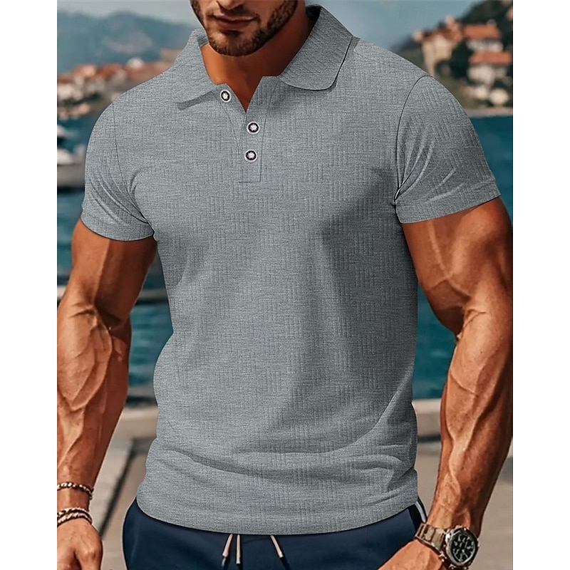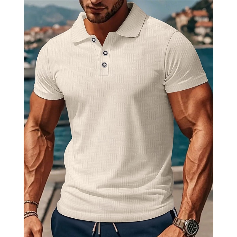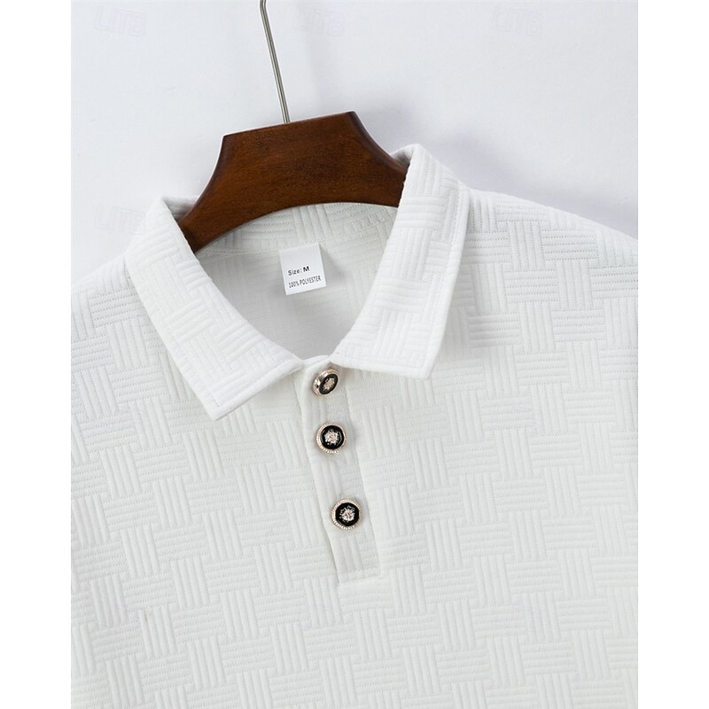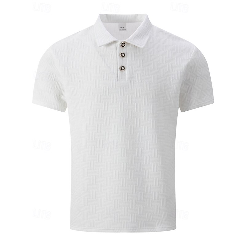 More information about Men's Golf Shirt Golf Polos Shirts Work Casual Lapel Short Sleeve Basic Modern Plain Buttons Jacquard Summer Regular Fit Black White Sky Blue Khaki Gray Golf Shirt