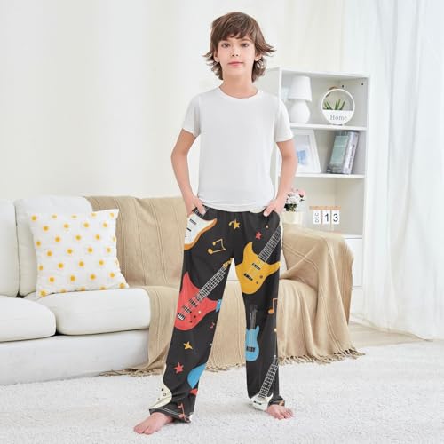 More information about Rock Guitar Print Boys Long Pants Soft Trousers Elastic Waist Kids Lounge Bottoms with Pockets S-XL