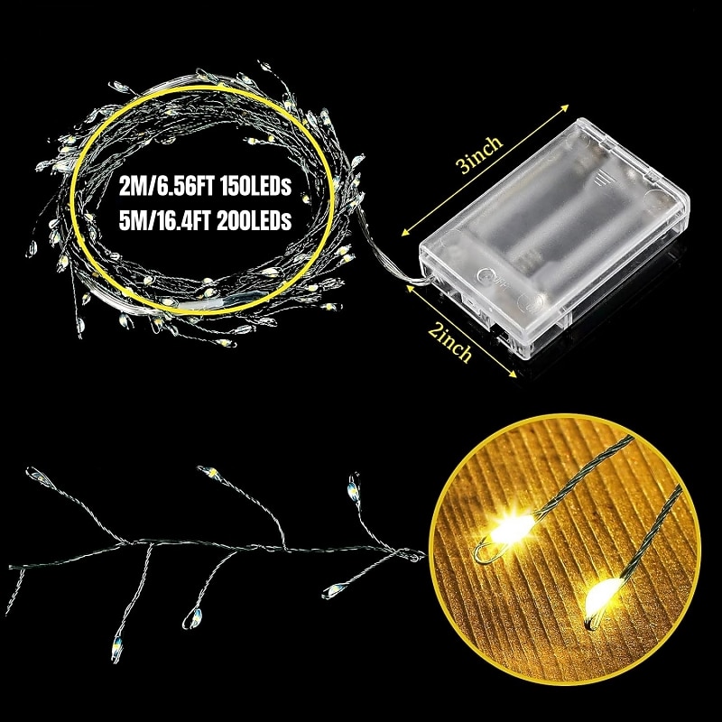 More information about LED String Lights Firecracker Copper Wire Flexible 2M 5M Set Fairy Garland Christmas Holiday Light for Christmas Wedding Holiday Party Room Decoration Warm White Colorful Lamp AA Battery Operated