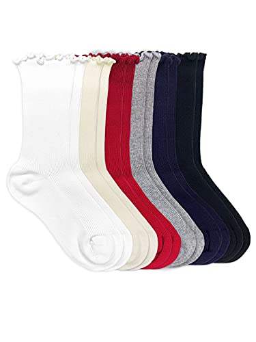 Jefferies Socks Girls Seamless Ruffle Cotton Cuff Crew Slouch School Socks 6 Pair Pack 4