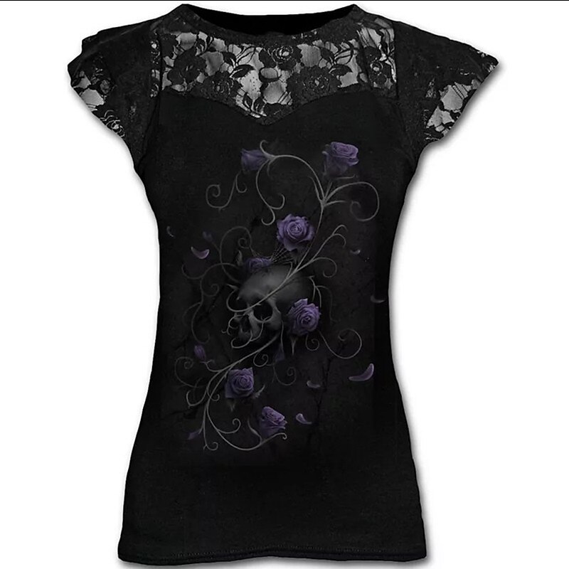 $21.99 - Retro Vintage Punk & Gothic T-shirt Halloween Costumes Skeleton Skull Lace Fancy Dress Women's Masquerade Party / Evening Adults' T-shirt 2025. Shop for cheap Tops online? Buy at lightinthebox.com on sale today!