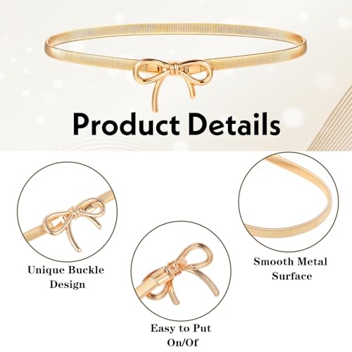 Skinny Gold Bow Belt, Stretchy Metal Chain Belt Adjustable Waist Belts for Women Girls Dresses Jeans Formal Casual Attire 4