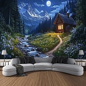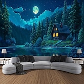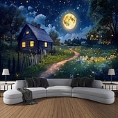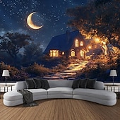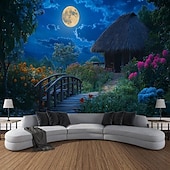 HOT ! Outdoor House Moon Plant Landscape Hanging Tapestry Wall Art Large Tapestry Mural Decor Photograph Backdrop Blanket Curtain Home Bedroom Living Room Decoration