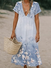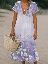 More information about Women's Midi Dress Casual Dress Hot Daily Date Loose Fit Flower Short Sleeve Deep V Light Green Pink Blue Light Purple Summer