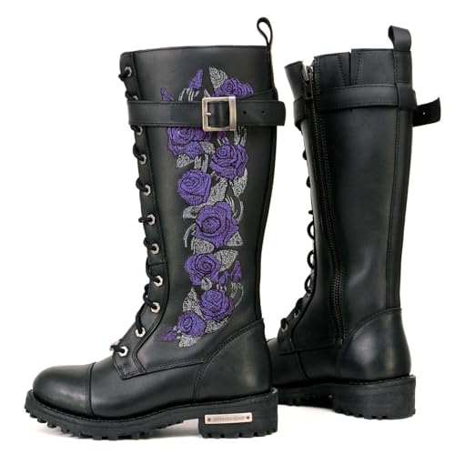 Milwaukee Leather Women's Black Leather 14-Inch Knee High Tall Motorcycle Boots Lace-Up w/Embroidery MBL9356 MBL9357 7