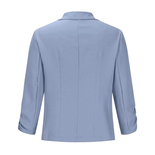HGps8w 3/4 Sleeve Blazers for Women Dressy Open Front Suit Jackets Classic Solid One Button Casual Work Office Cardigans 4