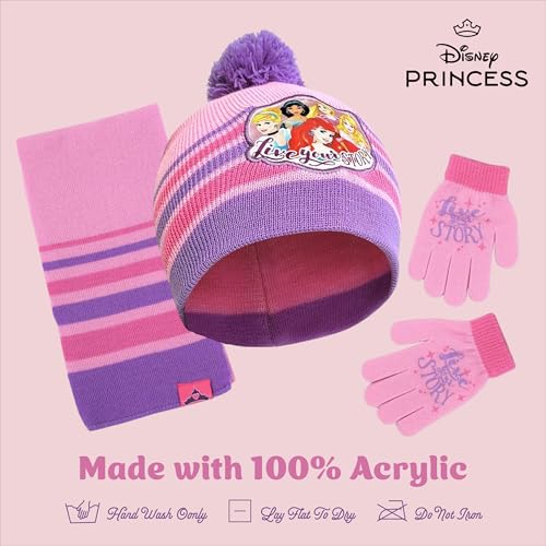 Disney Girls Princess Winter Hat, Scarf & Mittens Set For Toddler Ages 2-4 Or Hat, Scarves & Kids Gloves Sets For Ages 4-7 5
