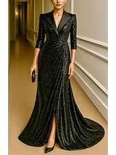 More information about Black Blazer Tuxedo Dress Sequin Mermaid / Trumpet Trumpet Formal Wedding Wedding Guest Satin Sequin Elegant 3/4 Length Sleeve Floor Length Notched Lapels Zipper