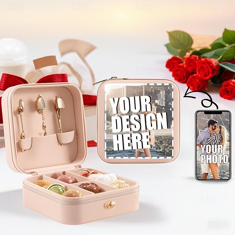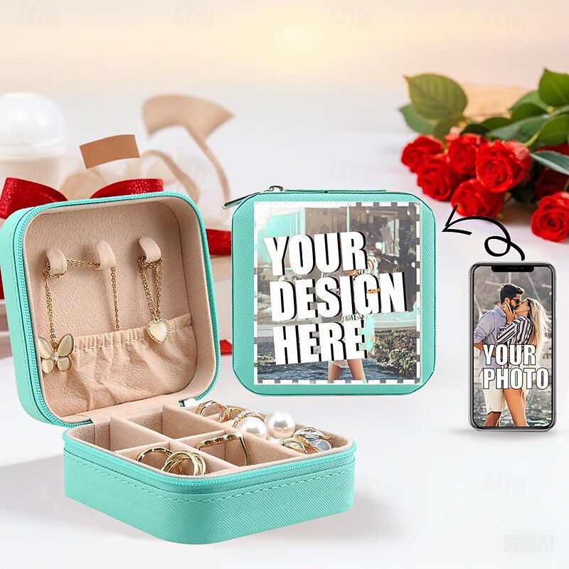 Personalized Photo Travel Jewelry Case Custom Best Gift for Mom - Portable PU Leather Mini Jewelry Travel Case for Girls, Women, Wedding Gift Storage Case for Women