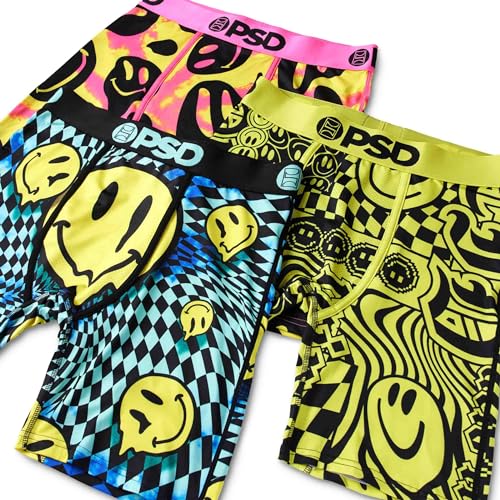 HOT ! PSD Men's Smiley Print Boxer Briefs - 7 Inch Inseam Breathable and Supportive Men's Underwear with Moisture-Wicking Fabric