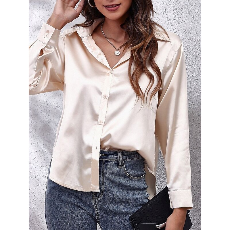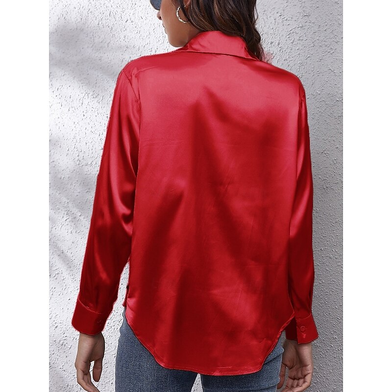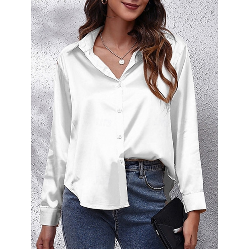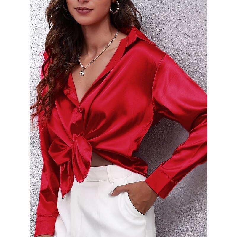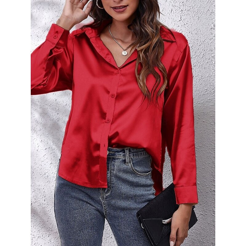 More information about Women's Shirt Blouse Solid Color Basic Casual Long Sleeve V Neck Regular Tops Daily Buttons White Red Beige Summer Spring Fall