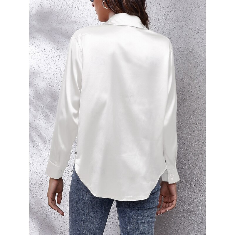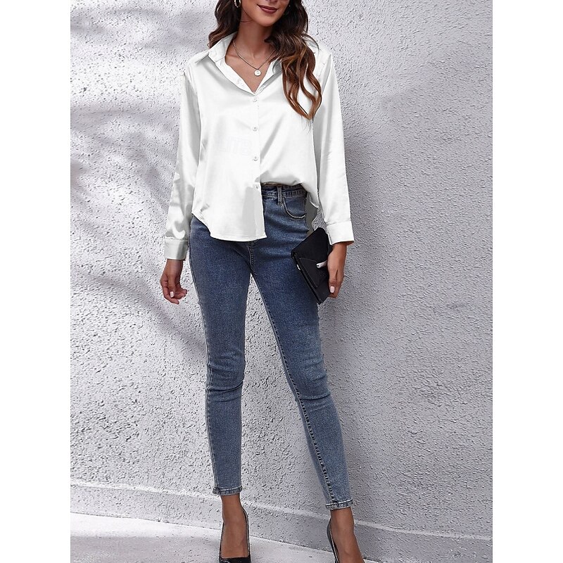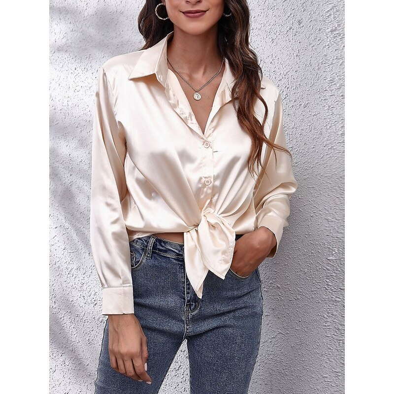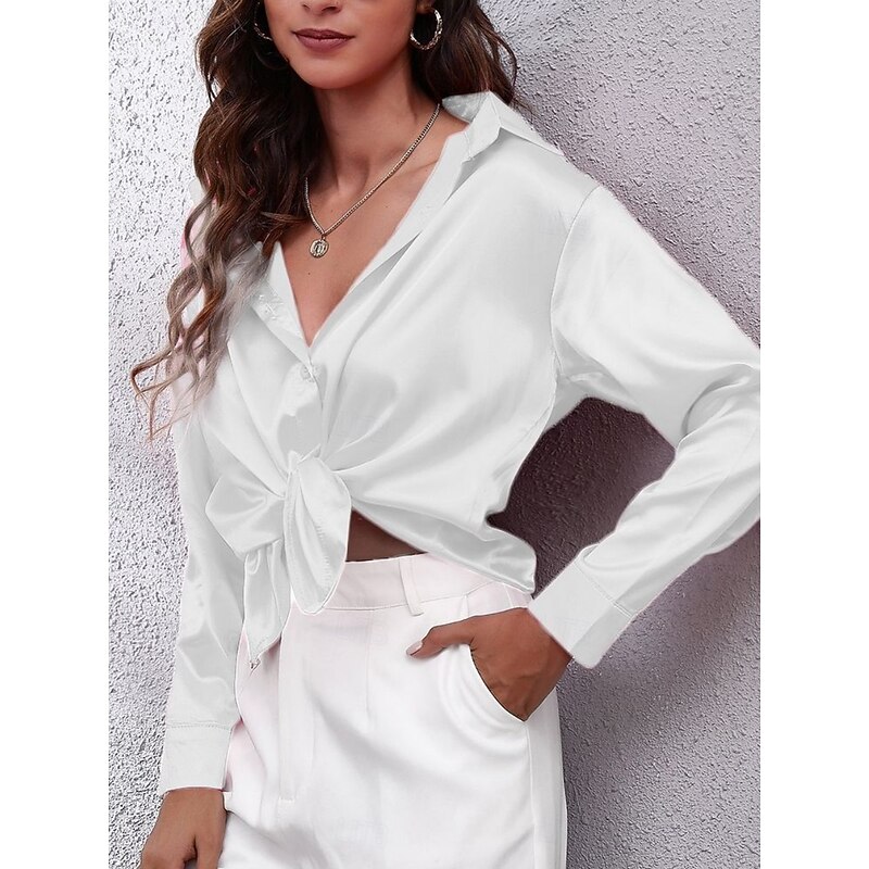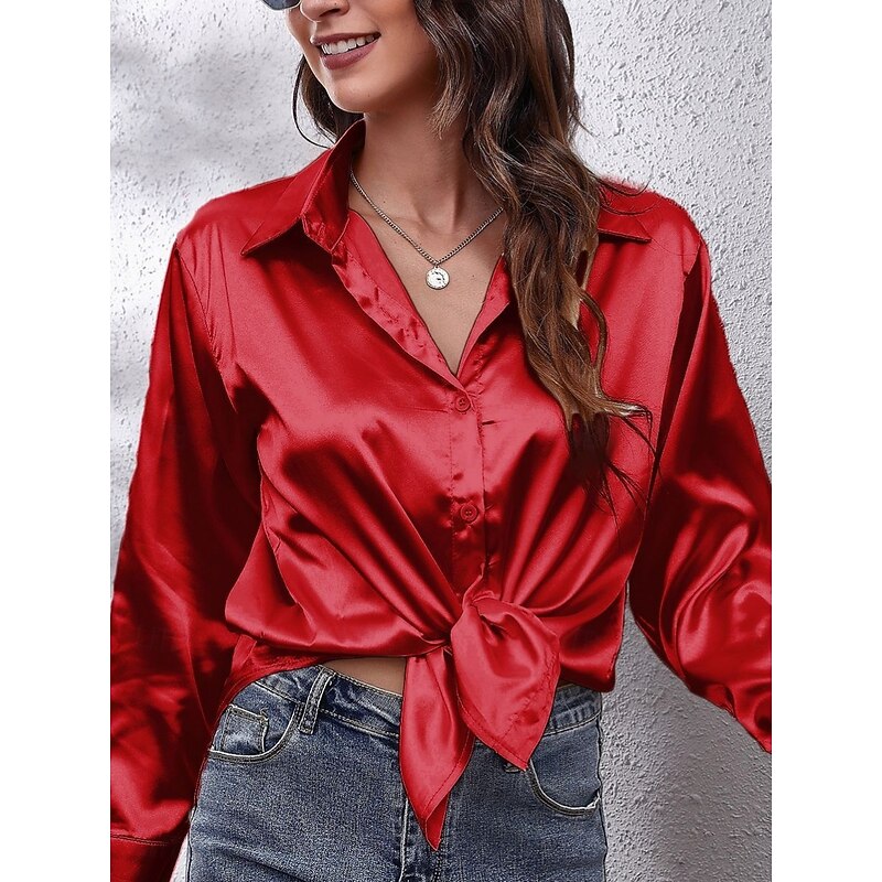 More information about Women's Shirt Blouse Solid Color Basic Casual Long Sleeve V Neck Regular Tops Daily Buttons White Red Beige Summer Spring Fall