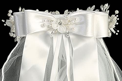 • ✨CUTE AND FANCY: This communion vail is 24 inches long and is double layered with cute piping at the edge - there is also a double bow at the back with a nice flower and flowing satin ribbons