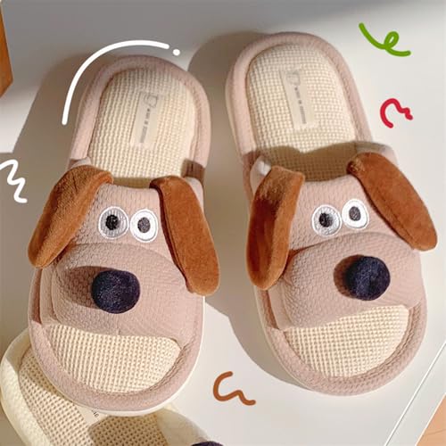 sought-after ! Dog Slippers for Women Man Open Toe Indoor Linen Slippers Four Seasons Cartoon Dog Animal Slides Sandals Comfy Outdoor Non-Slip Home Shoes(40/41 EU, Khaki)