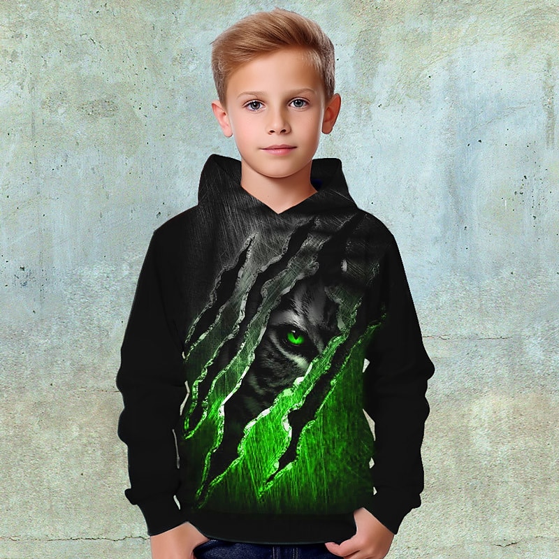 Boys 3D Animal Tiger Hoodie Pullover Long Sleeve 3D Print Fall Winter Fashion Streetwear Cool Kids 3-12 Years Outdoor Casual Daily Regular Fit