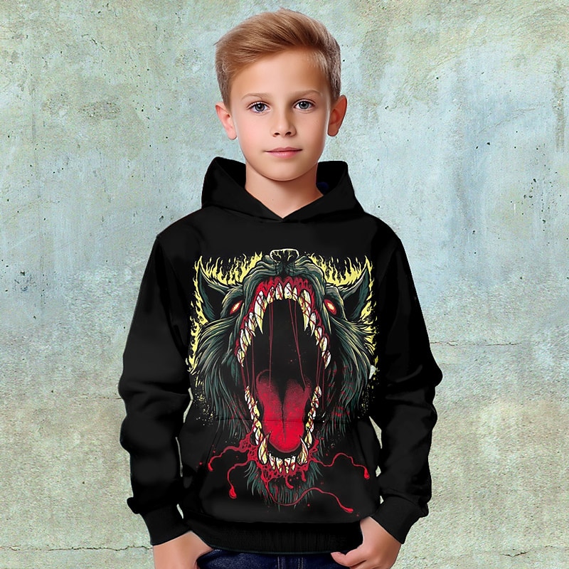 More information about Boys 3D Animal Tiger Hoodie Pullover Long Sleeve 3D Print Fall Winter Fashion Streetwear Cool Kids 3-12 Years Outdoor Casual Daily Regular Fit