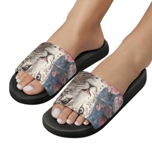 White Leopard Peony Flowers Slippers for Men Wormen Shower Bathroom Slipper Indoor Beach Non Slip Sandal 7
