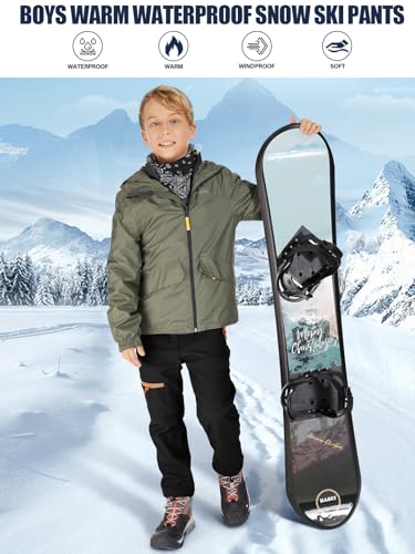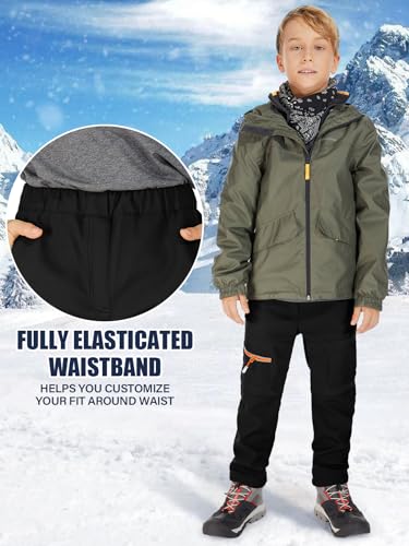 linlon Kids Boy's Snow Waterproof Pants Youth Fleece Lind Hiking Softshell Warm Insulated Trousers 3