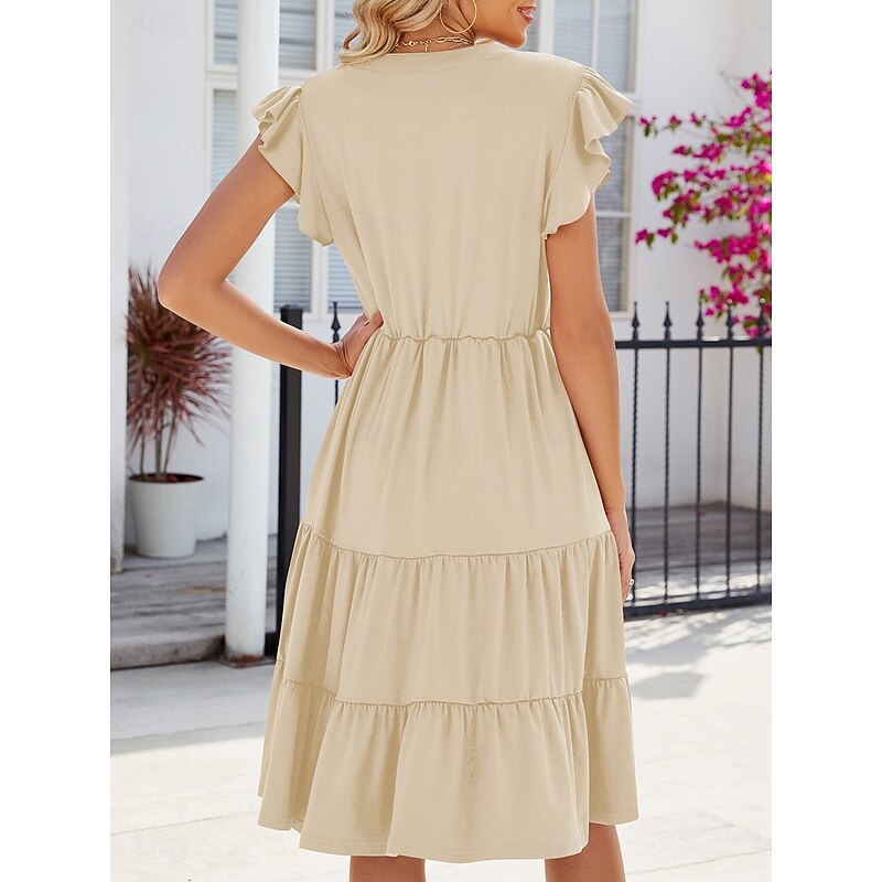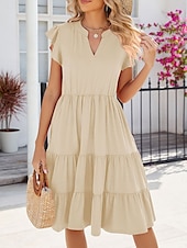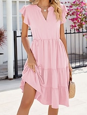 More information about Women's Maxi Dress Cotton Dress Stylish Basic Casual Vacation Daily Regular Fit Plain Short Sleeve V Neck Pink Apricot Summer