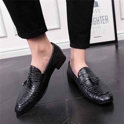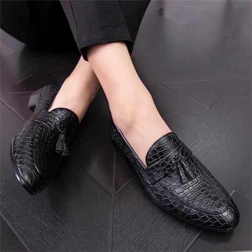 Men's Crocodile Embossed Leather Slip-on Tassel Decor Penny Dress Loafer Shoes Handmade Point Toe Luxury Classic Casual Style Non-Slip Sole for Party Wedding Business Formal Driving 6