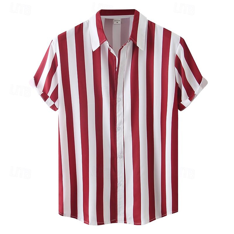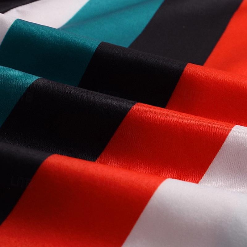 More information about Men's Summer Shirt Casual Shirt Bowling Shirt Button Up Shirt Yellow Red Blue Green Short Sleeve Color Block Stripes Turndown Vacation Hawaiian Patchwork Clothing Apparel Polyester Fashion Casual