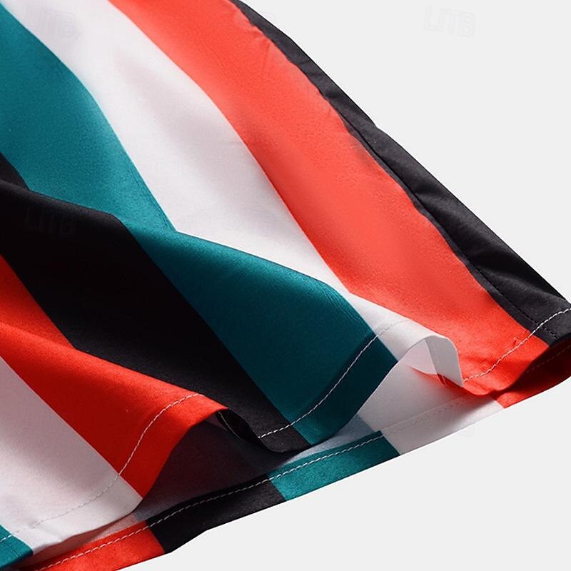 Men's Summer Shirt Casual Shirt Bowling Shirt Button Up Shirt Yellow Red Blue Green Short Sleeve Color Block Stripes Turndown Vacation Hawaiian Patchwork Clothing Apparel Polyester Fashion Casual 11