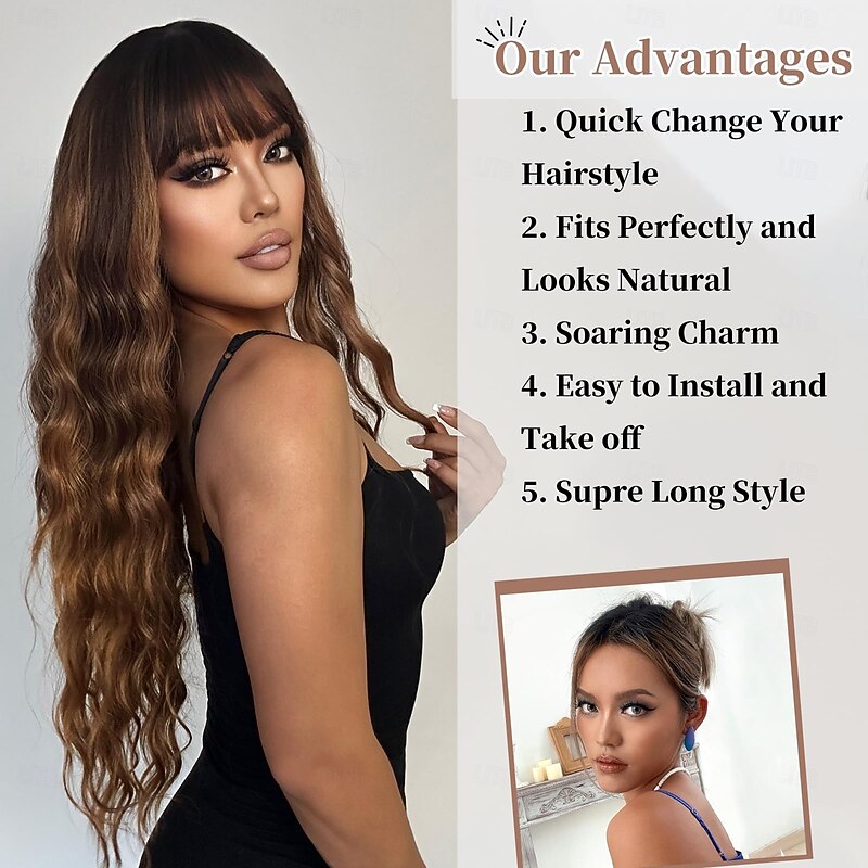 Why Choose Long Wigs with Bangs Wigs for Women Wig Synthetic Curly Wavy Heat Resistant Wigs for Daily Party Use?