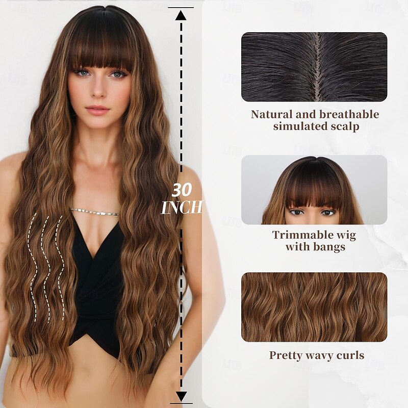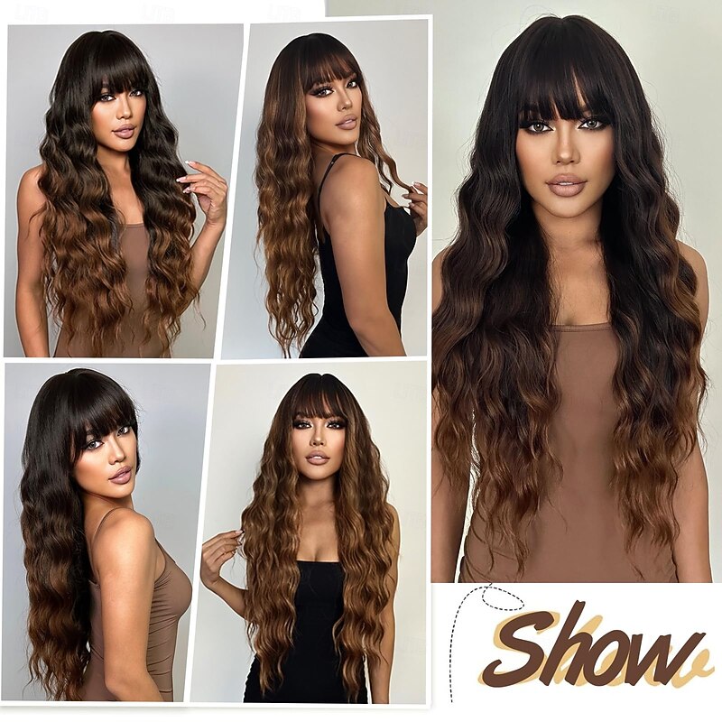 $20.99 - Long Wigs with Bangs Wigs for Women Wig Synthetic Curly Wavy Heat Resistant Wigs for Daily Party Use 2025. Shop for cheap Synthetic Trendy Wigs online? Buy at lightinthebox.com on sale today!