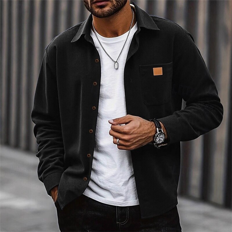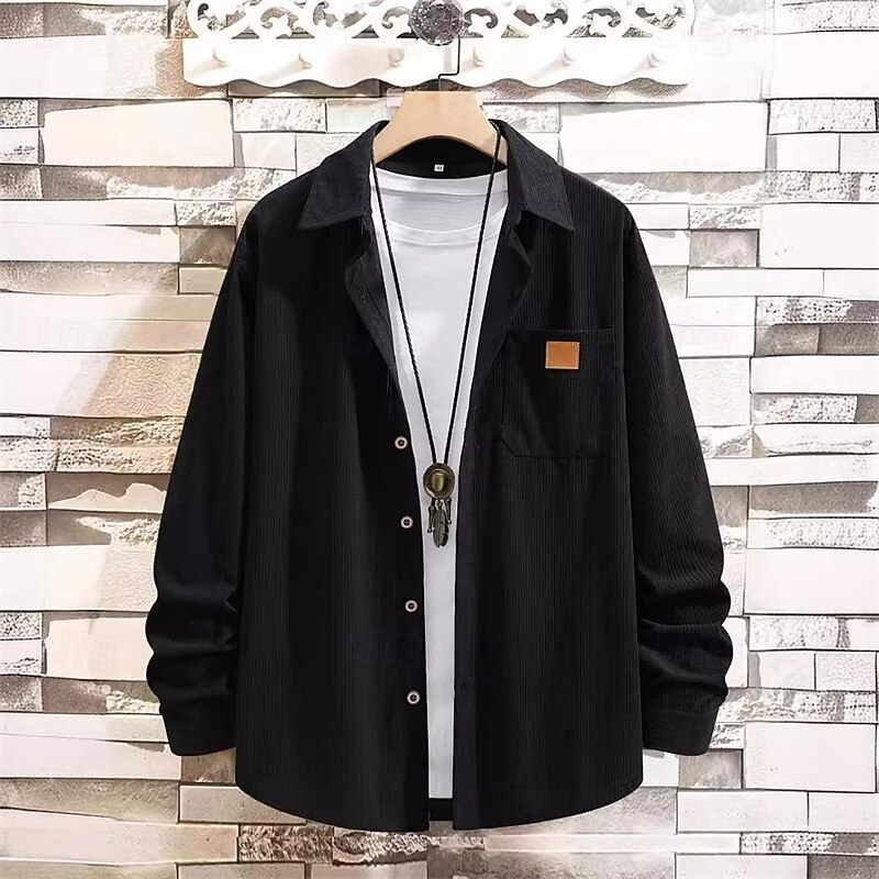 More information about Men's Corduroy Jacket Casual Jacket Vacation Daily Breathable Pocket Fall Winter Plain Fashion Classic Lapel Regular Black Khaki Army Green Jacket