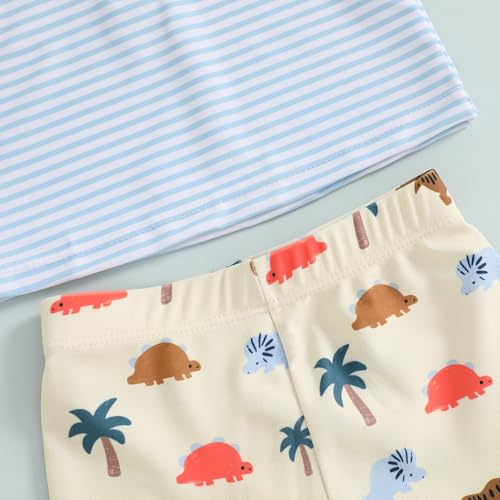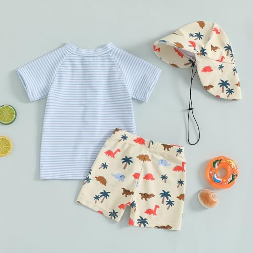 • Design:Toddler Boys’3 Piece Rash Guard Set,baby boy swimwear,toddler bathing suit for baby boy,short sleeve swimsuit,swim t-shirt,swimsuit shirt top,crew neck,zipper closure,with swim trunk,turtle/dinosaur printed swimming shorts,and a sun hat,classic pattern and vibrant color,which will make your little one look charming in the water.baby swimsuit blocks out most of the sun's harmful UV radiation.Protect your baby's skin all day.He can enjoy endless hours of fun in this summer