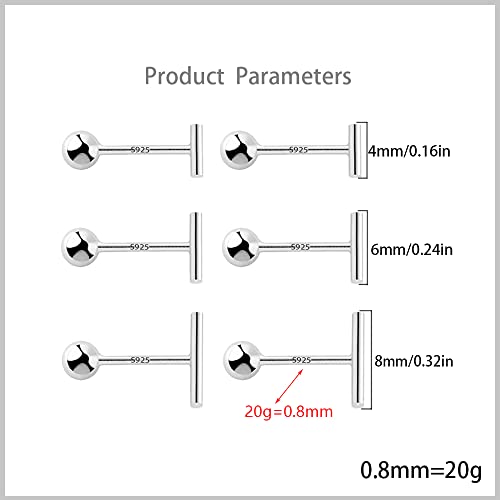 20g Tiny Bar Earrings for Women Girls 925 Sterling Silver Hypoallergenic Minimalist Round Small Ball Stud Cartilage Tragus Barbell Screw Back Earring Simple Polished Jewelry Dainty Gifts 4/6/8mm 6