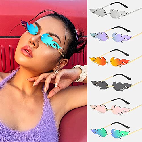 ENTHYI Polygon Flame Sunglasses for Women Frameless Party Colorful Punk Eyewear Cosplay Glasses Men 3