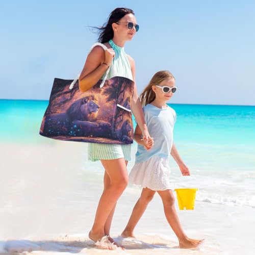 Large Beach Bags Totes Canvas Tote Shoulder Bag Luminous Lion Water Resistant Bags for Gym Travel Daily 2
