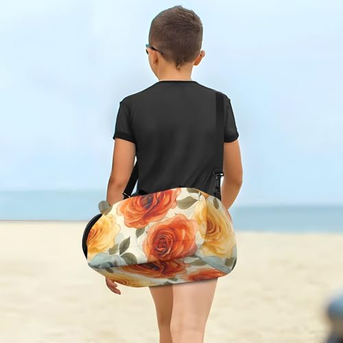 Duffle Bag Kids Gym Bag with Shoes Compartment & Wet Separation Overnight Travel Duffel Bag Blue White Flower Ink for Girl Boy 6